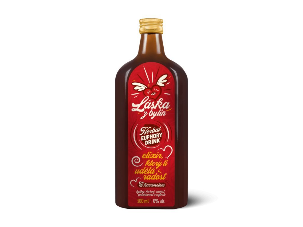 Báječný elixír Láska z bylin Euphory drink s lehkým kofeinovým povzbuzením. Nápoj je určený pro navození dobré nálady, pocitu euforie a duševního relaxu, pro volnou chvíli s úsměvem na tváři. Nabízíme buď větší 500 ml. variantu, nebo menší 100 ml.