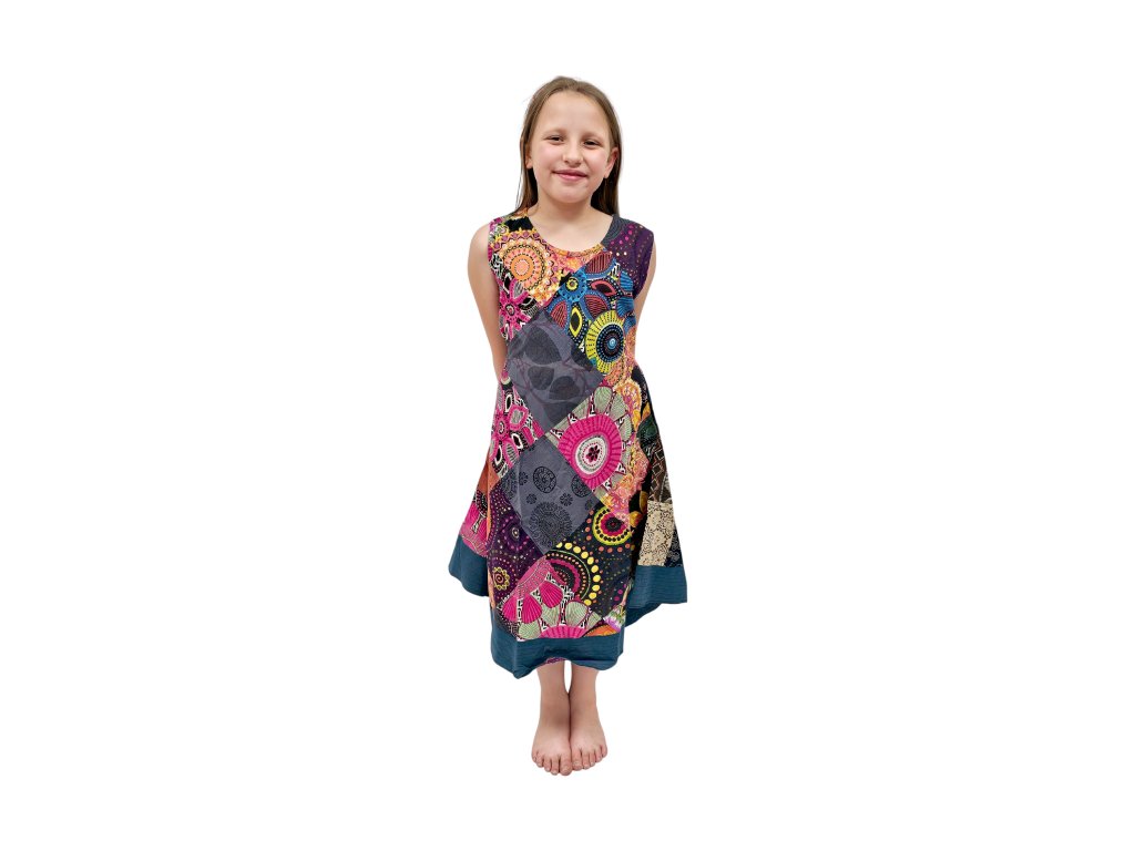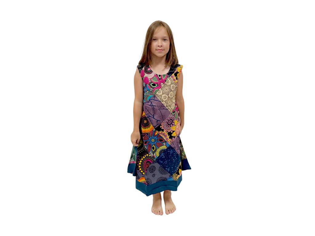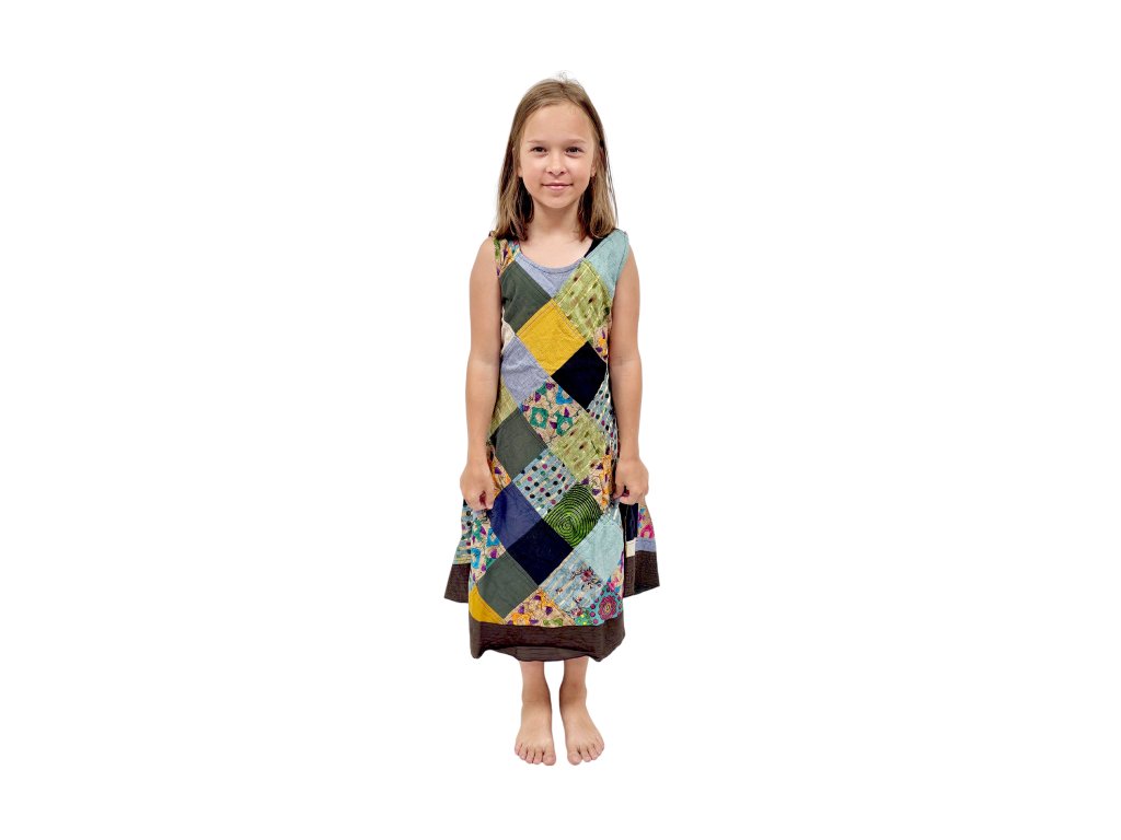 Patchworkové šaty z Nepálu – každé šaty originál věk cca 11-12 let