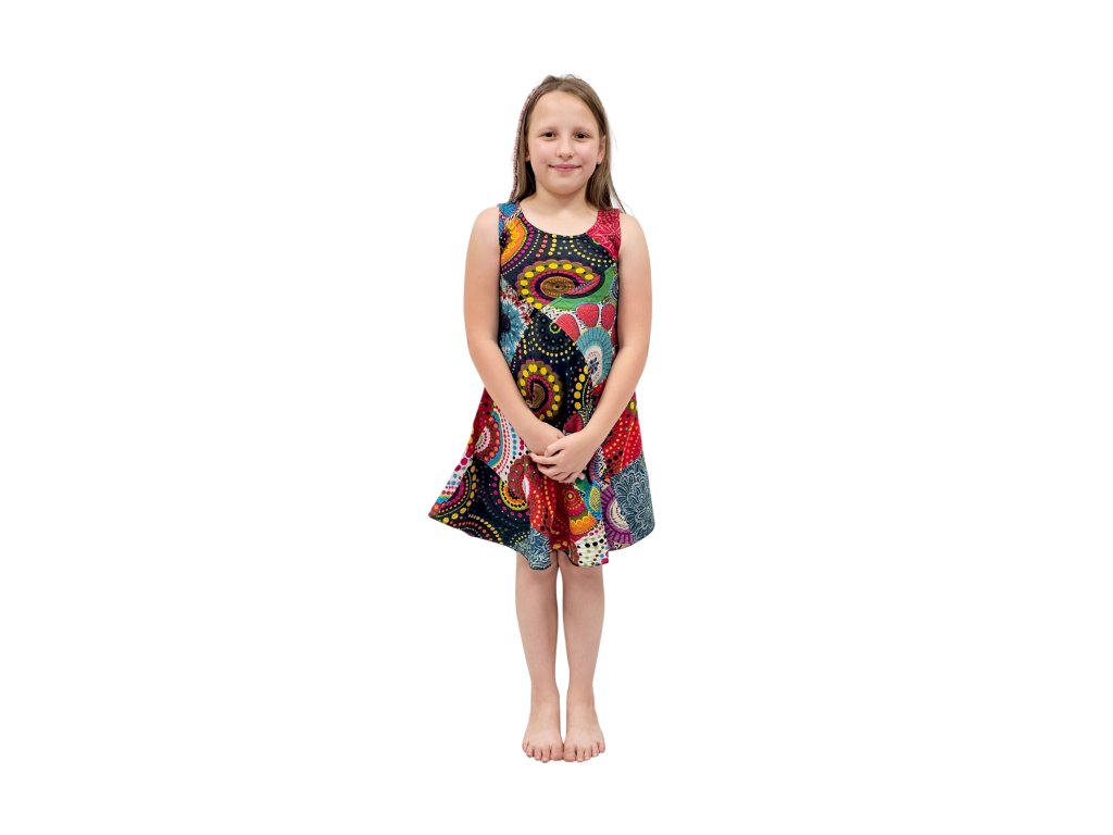 Patchworkové šaty z Nepálu – každé šaty originál věk cca 7 - 8 let