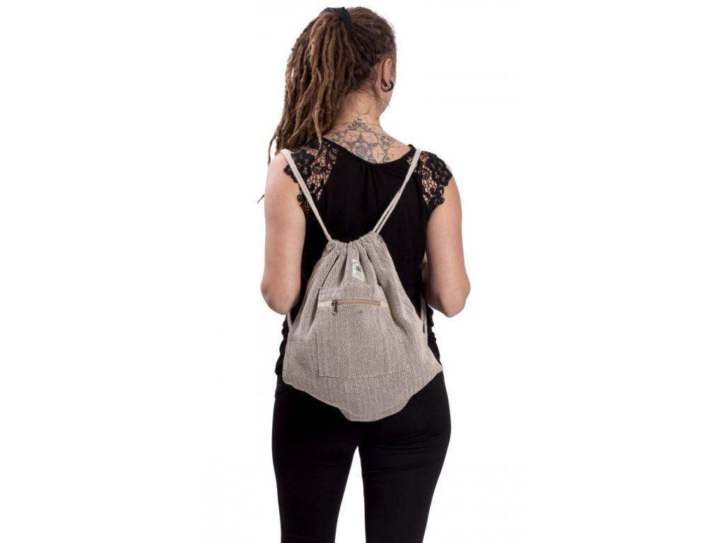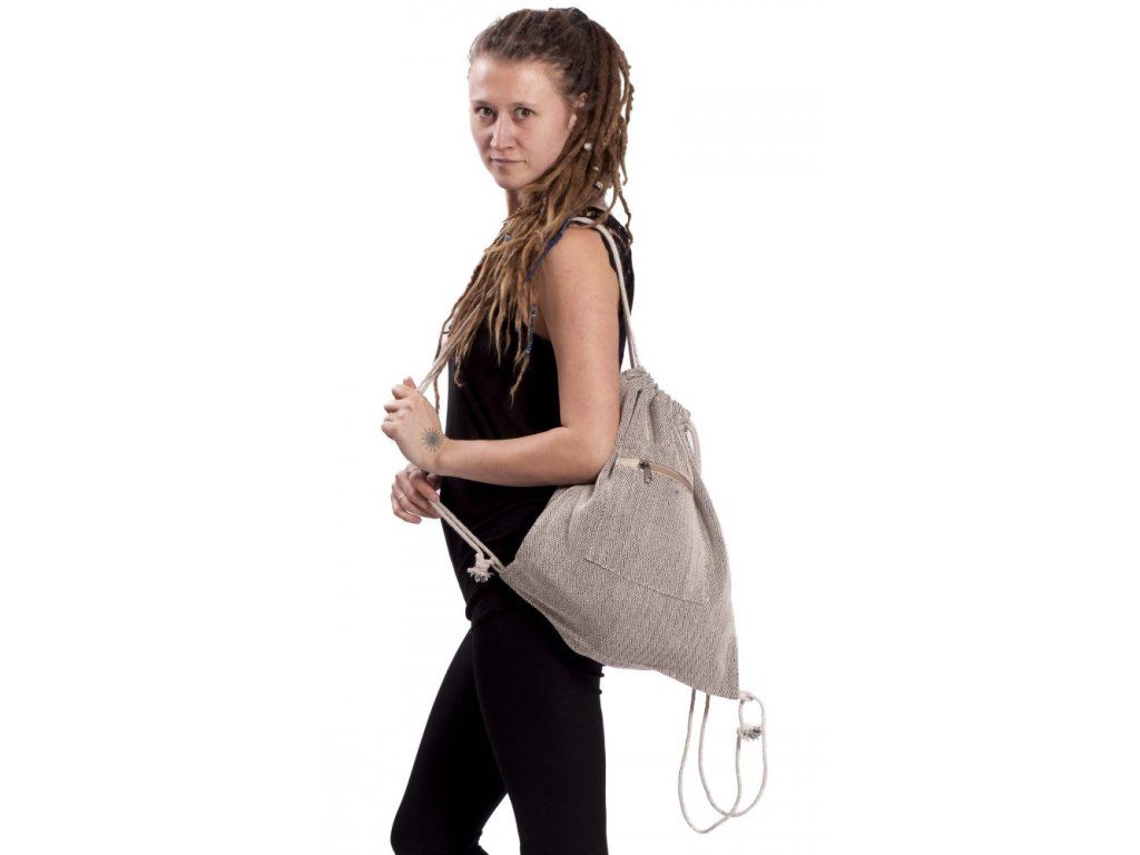 Bavlněný vak na záda s přední kapsou tmavě hnědý