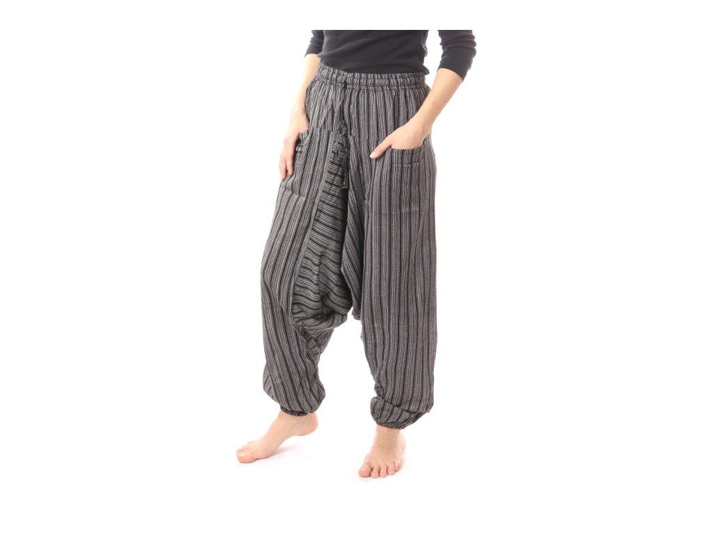 Bavlněné harémky s proužkem – Grafitově šedá