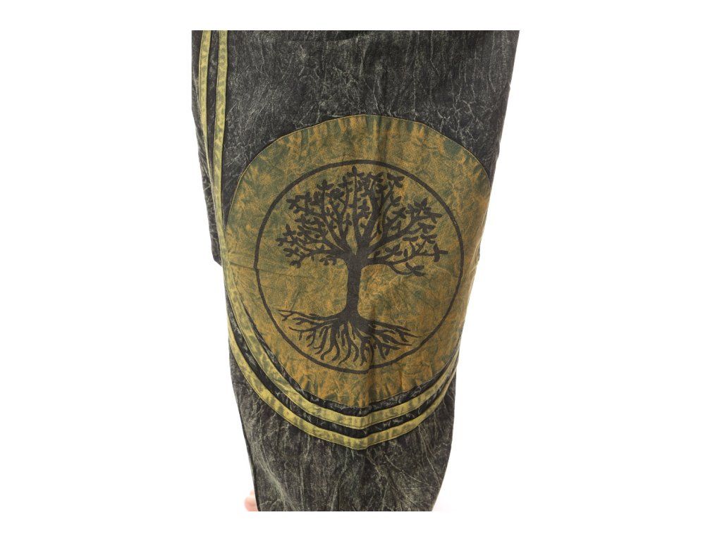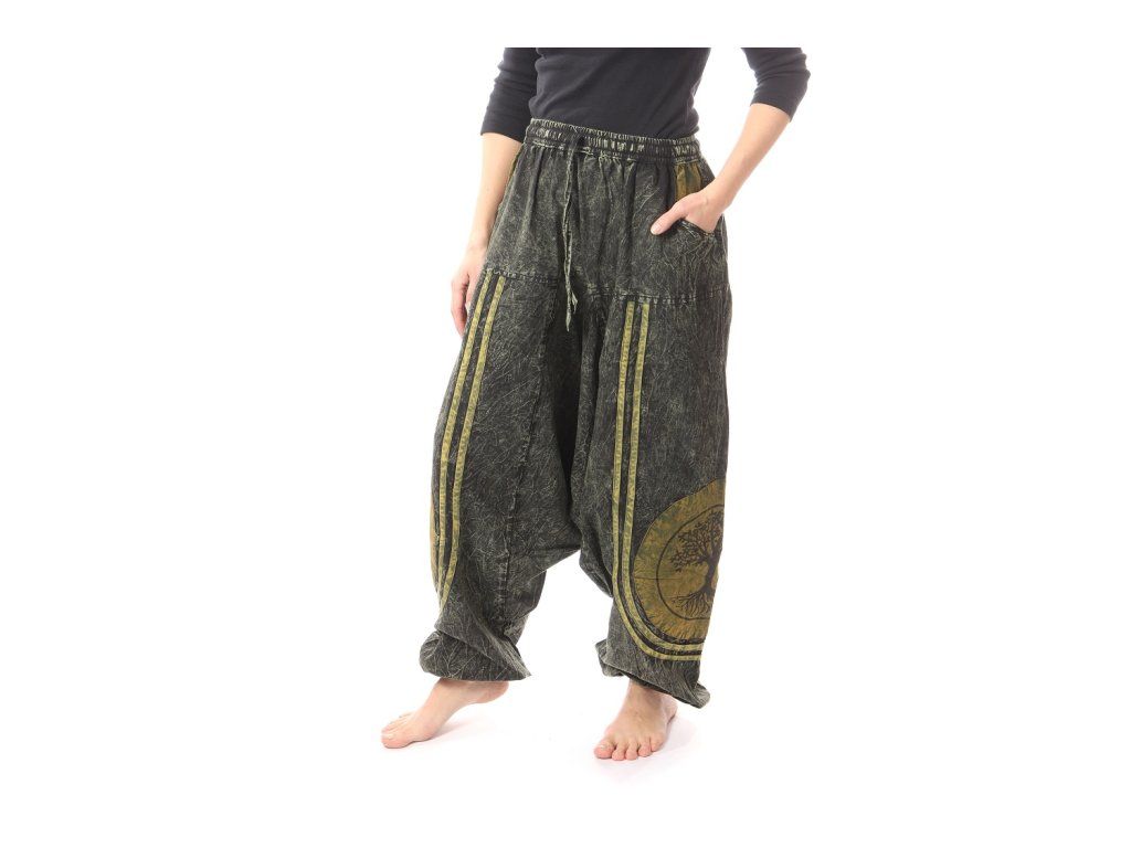 Bavlněné harémky se symbolem Strom života – Olivovo-černé (Stone-wash)