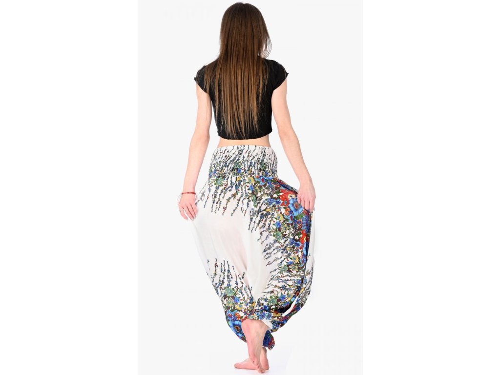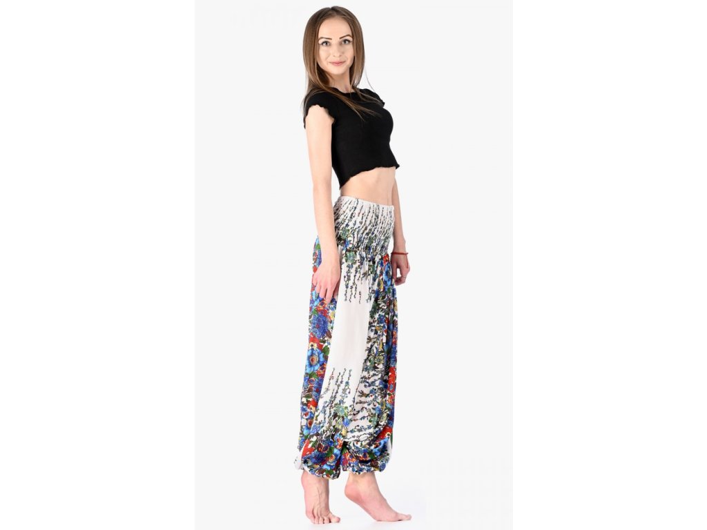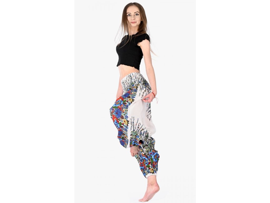 Kalhoty harémové / sultánky rozkvetlé kvítí