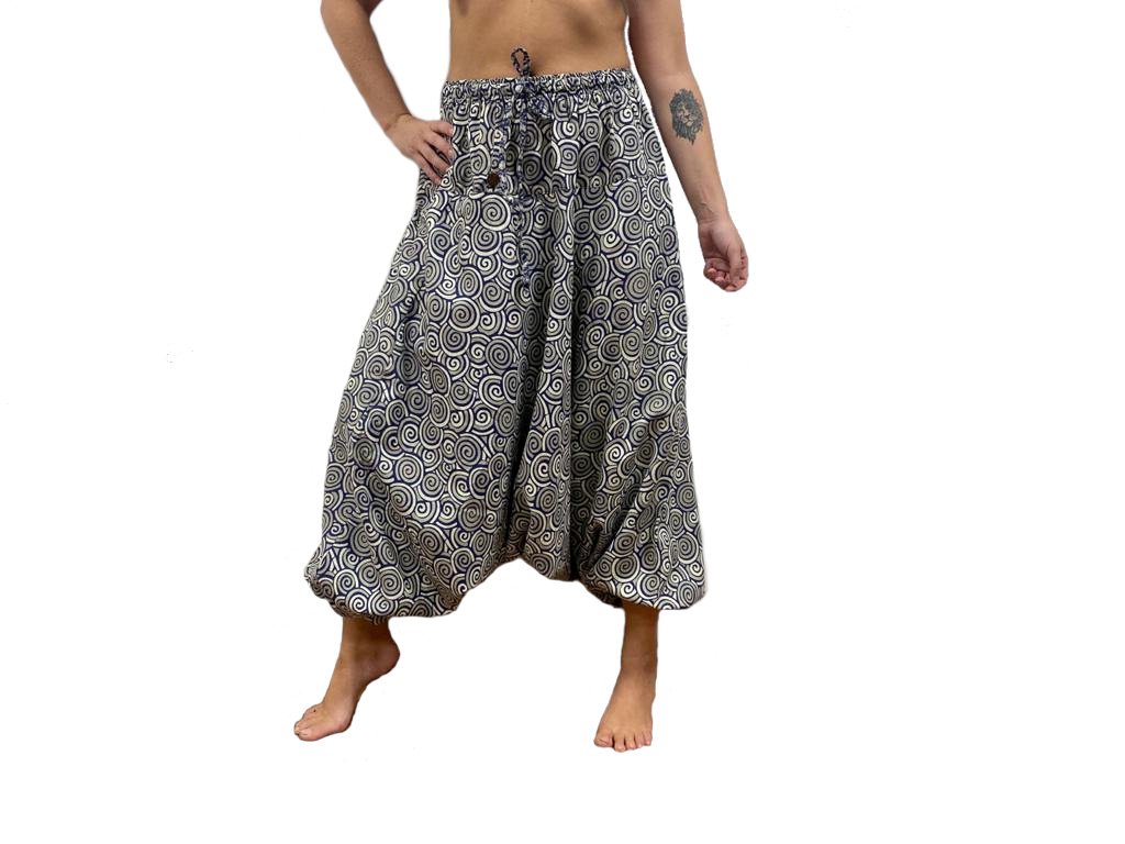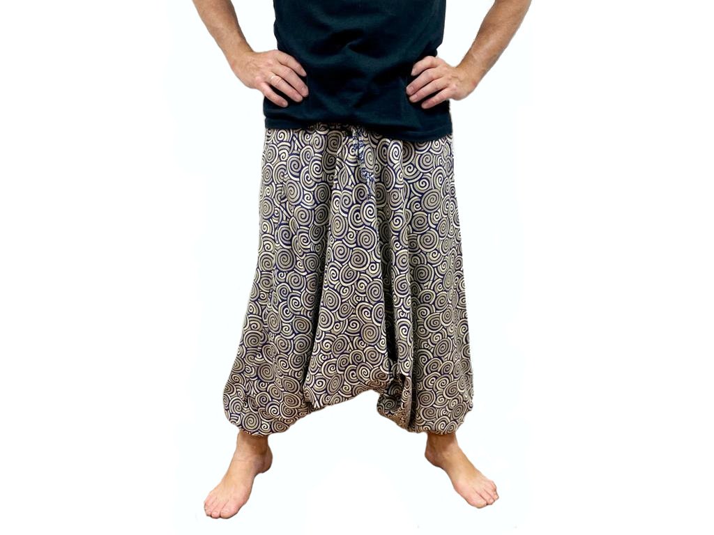 Kalhoty mají gumový pás, díky kterému jsou v univerzální velikosti.
