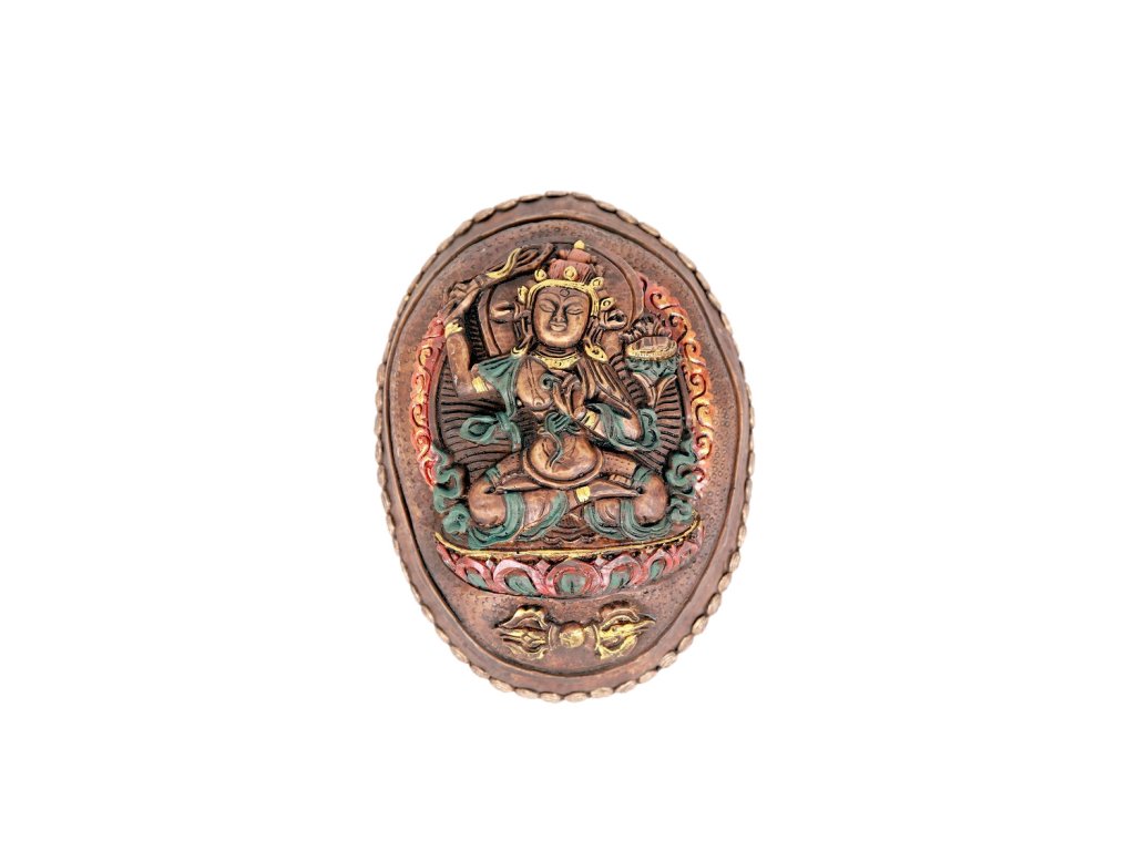 Maňdžušrí je bódhisattva moudrosti. Patří mezi nejstarší a nejvýznamnější bódhisattvy. V pravé ruce drží plamenný meč, jímž odděluje nevědomost od pravého poznání. Meč představuje realizaci transcendentní moudrosti. Levou rukou provádí gesto ochrany.