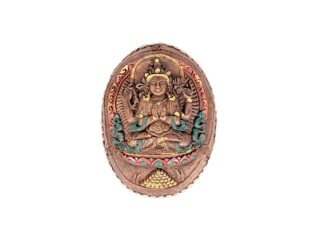 Chenrezig (Čenrezig) také známý jako Avalókitéšvara, "ten kdo se dívá neochvějným okem", je nejuctívanějším ze všech bódhisattvů a ztělesňuje soucit všech Buddhů. Naslouchá modlitbám všech cítících bytostí v dobách výzev a obtíží. V jednom prominentním buddhistickém příběhu Chenrezig přísahá, že si nikdy neodpočine, dokud nepomůže osvobodit všechny cítící bytosti ze samsáry, ale navzdory jeho nejlepšímu úsilí je jeho úkol zdrcující. Někdy se Chenrezig představoval s jednácti hlavami a tisíci pažemi rozprostřenými kolem sebe. Tibetský buddhismus spojuje Chenreziga se šestislabičnou mantrou Om Mani Padme Hům, a když je tato mantra vslovena nahlas, nebo v tichu dovolává se jeho laskavé moci a zásahu. Chenrezig je považován za patrona Tibetu a ve skutečnosti je jeho inkarnací žijící Buddha, Dalai Lama