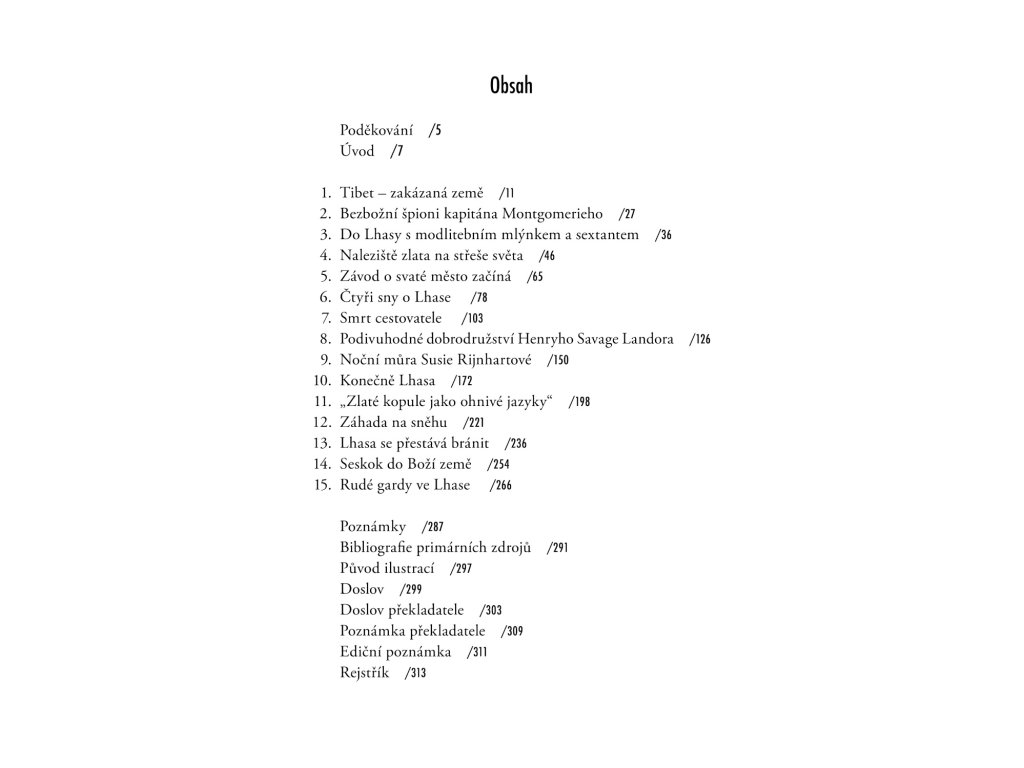 Už v 19. století představoval Tibet a jeho hlavní město Lhasa, ležící téměř tři kilometry nad mořem, pro mnohé cestovatele ten nejvytouženější cíl. Vábení tajemné země i její strategický význam vedly odhodlané cestovatele z viktoriánské Británie, carského Ruska, Ameriky a řady dalších zemí světa k tomu, aby se zas a znova a bez ohledu na neochotu, ba až odpor Tibeťanů pokoušeli do této izolované oblasti proniknout. Osudy oněch nejrůznějších dobrodruhů, mystiků, horolezců a misionářů líčí britský novinář, historik a spisovatel Peter Hopkirk poutavě a čtivě. Popisuje rovněž, jakými způsoby se Čína odjakživa snažila na „střeše světa“ udržet a prosadit zde svůj vliv, což vyvrcholilo čínskou invazí v 50. letech 20. století. V krátkém doslovu Hopkirk aktualizuje text pojednáním o dnešním Tibetu – okupovaném dodnes Číňany.