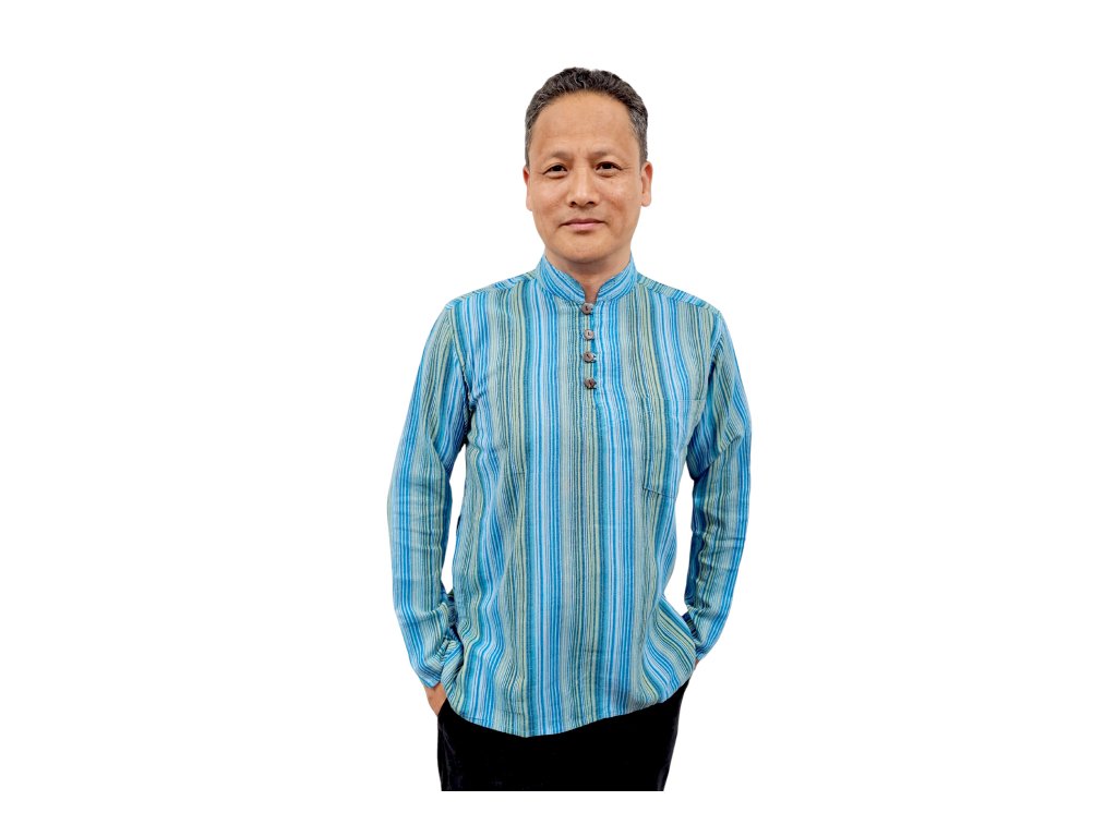 Pánská pruhovaná kurta s dlouhým rukávem zeleno-modrá
