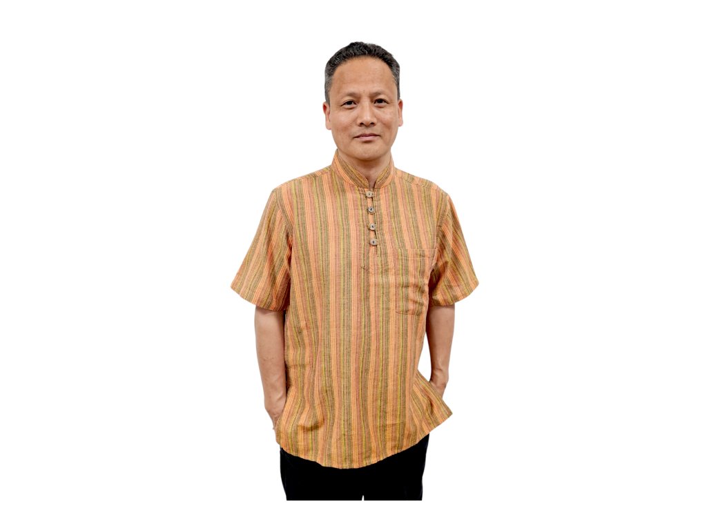 Pánská pruhovaná kurta s krátkým rukávem oranžová