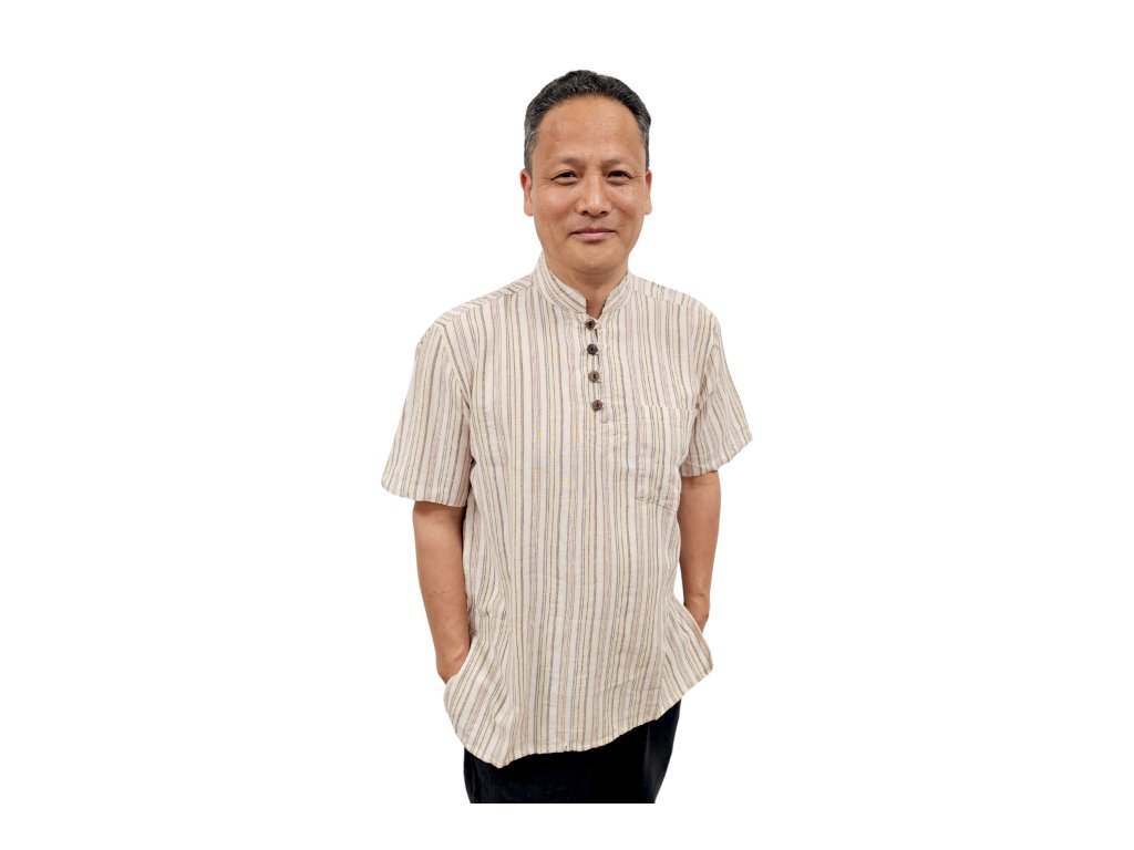 Pánská pruhovaná kurta s krátkým rukávem světlá