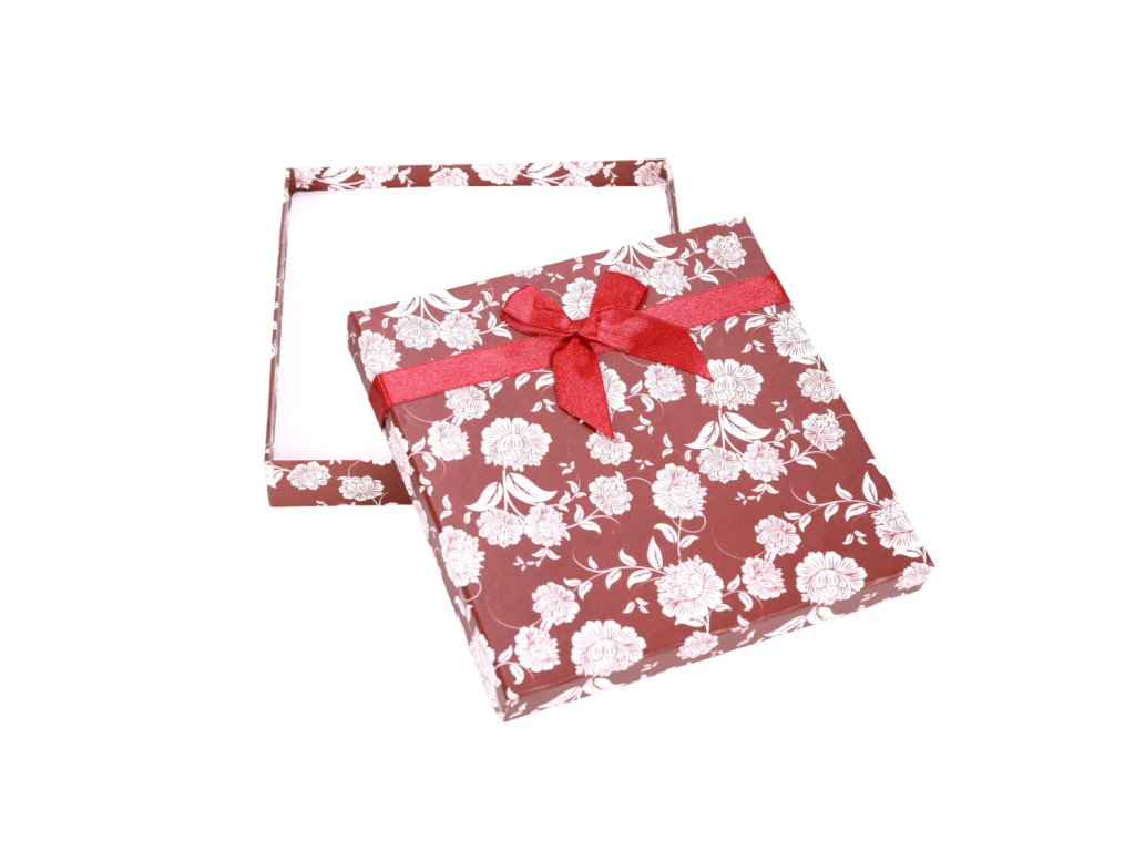 Krabička na malu, náhrdelník, sadu šperků s mašlí a vzorem růží bordó