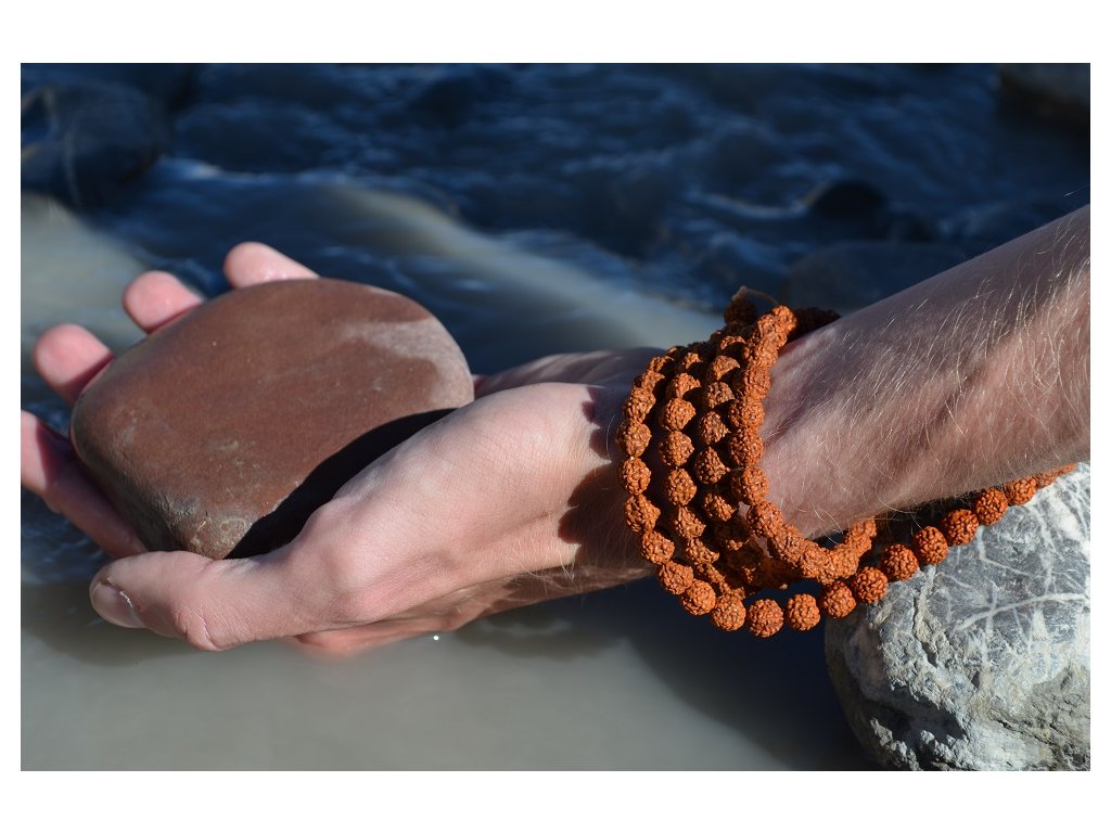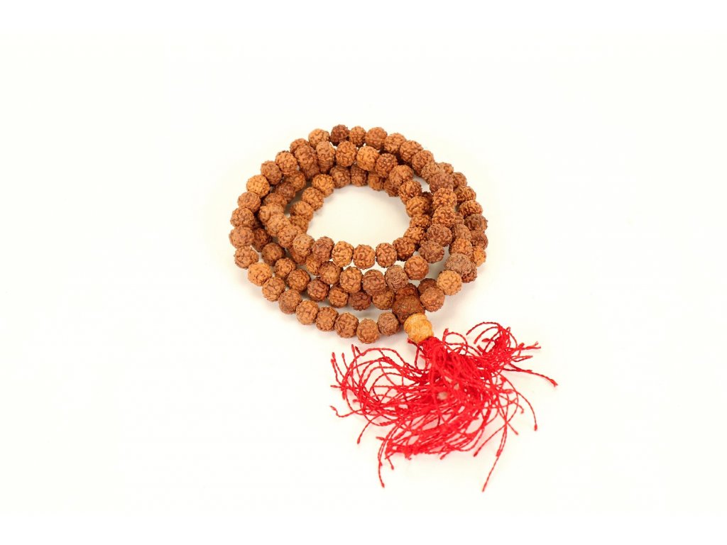 108 korálků ze semínka rudraksha navlečené na šňůrce. Jednoduchá mála, která přináší mír, sílu a ochranu a tlumí stres.