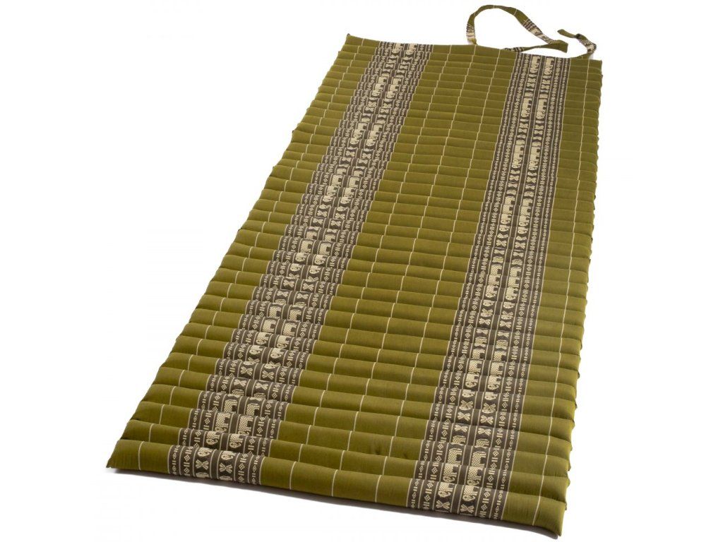 Thajský futon s kapokovou výplní 80×190 cm zelený se slony