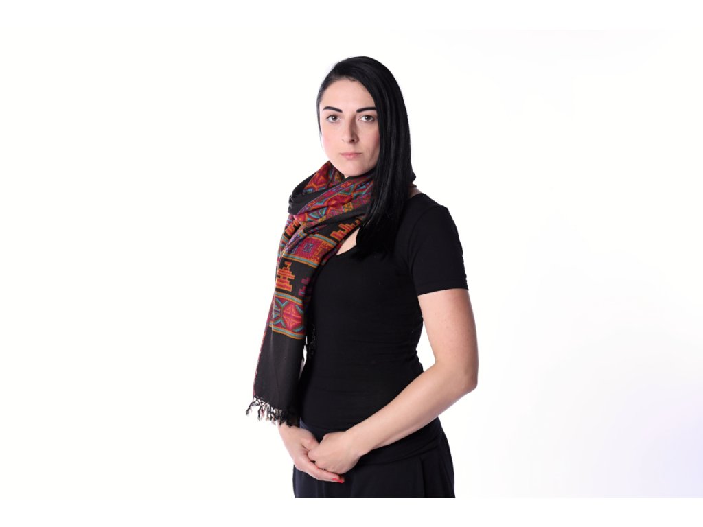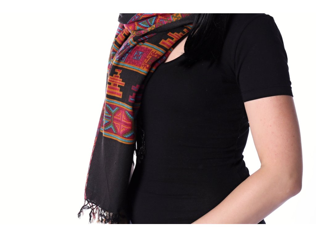 Šál vlněný černý s pestrými vzory