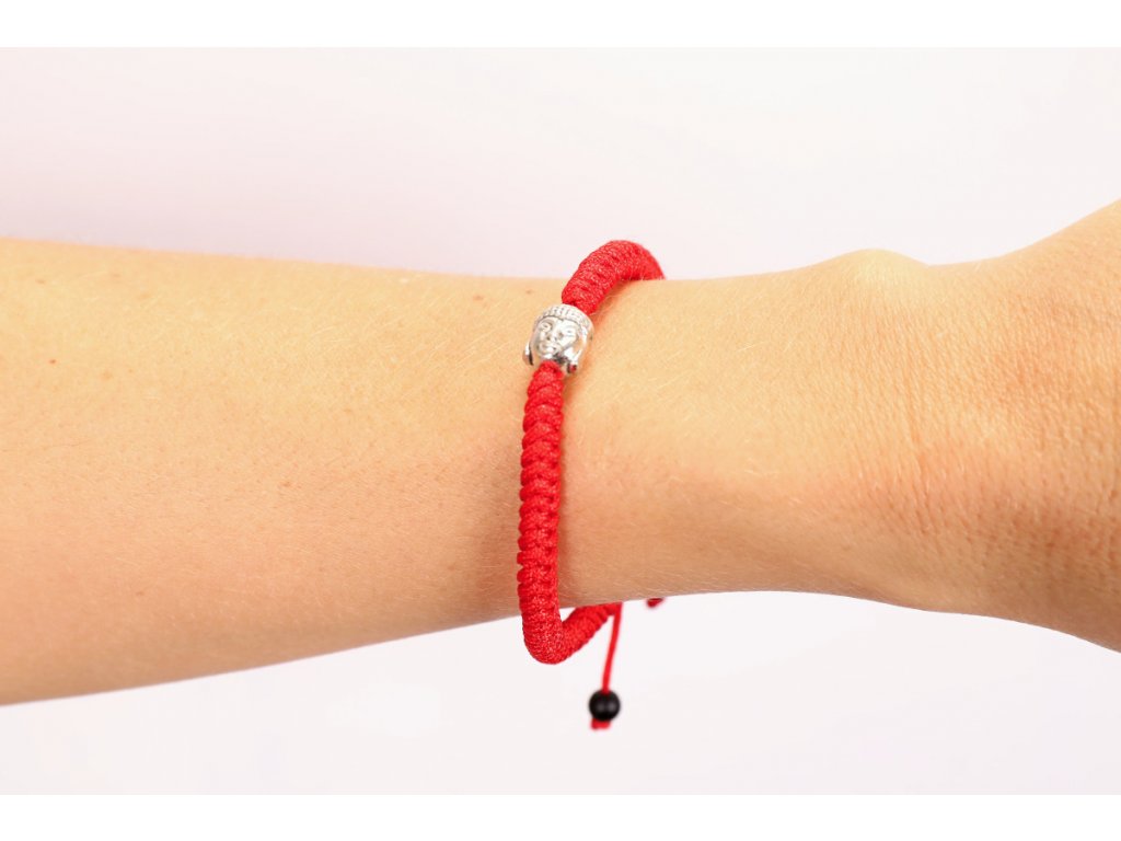 Náramek pletený kulatý červený - s Buddhou