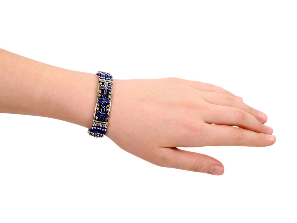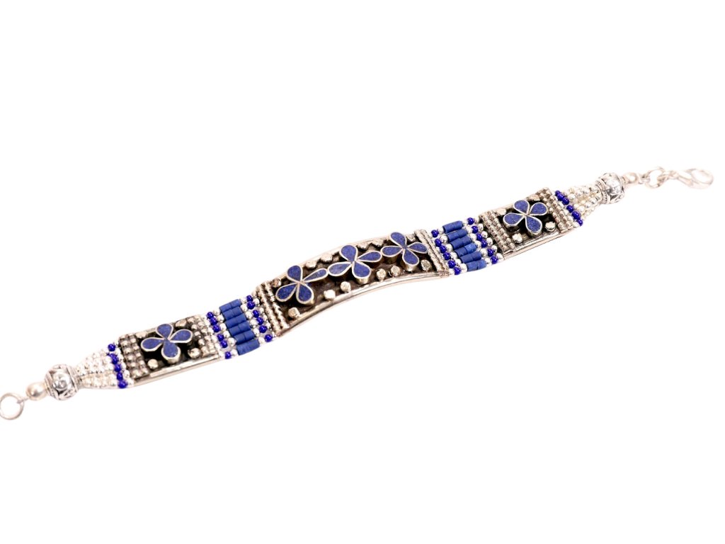 Tibetský náramek s květy - tmavě modrý