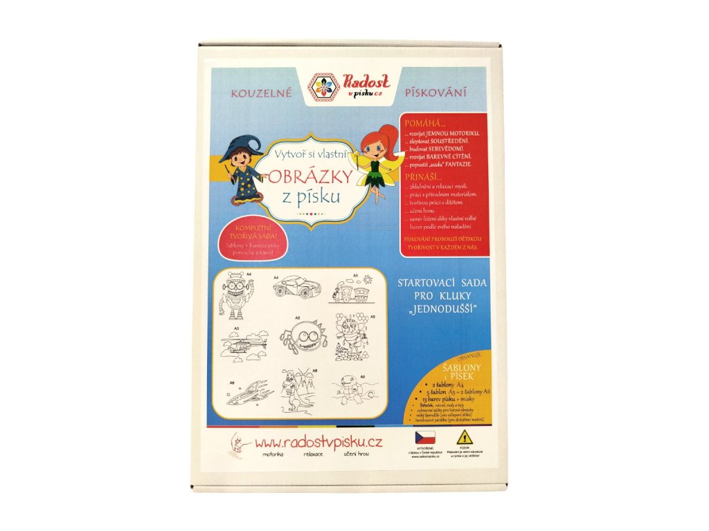 Pískování je zábavnou, kreativní a cenově dostupnou aktivitou, která je určena pro děti již od 2 let až po seniory. Založena je na aplikaci barevnéo písku na samolepící šablonu, která je rozdělena do několika částí.