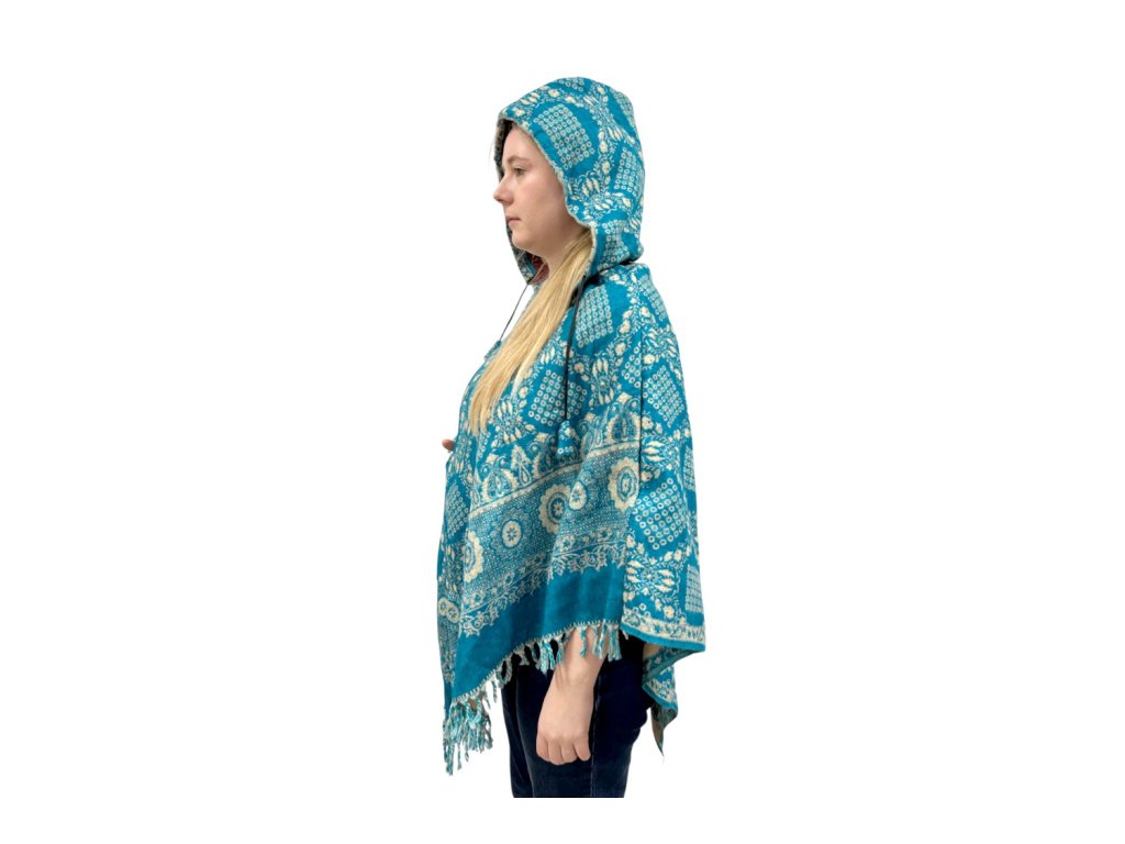 Pončo modré se vzorem
