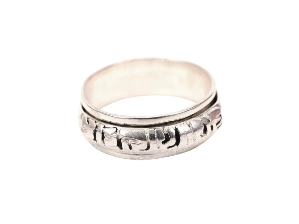 Prsten točivý stříbrné barvy s mantrou