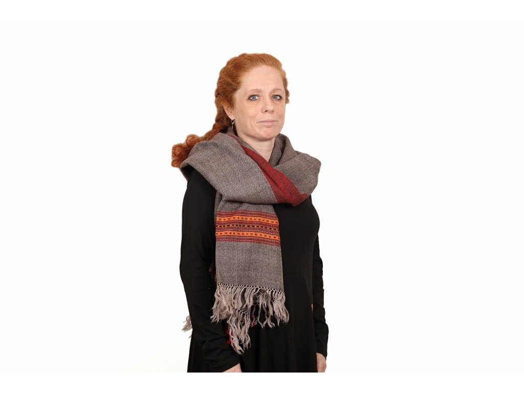 Šála vlněná Cambu šedá s oranžovo červeným vzorem