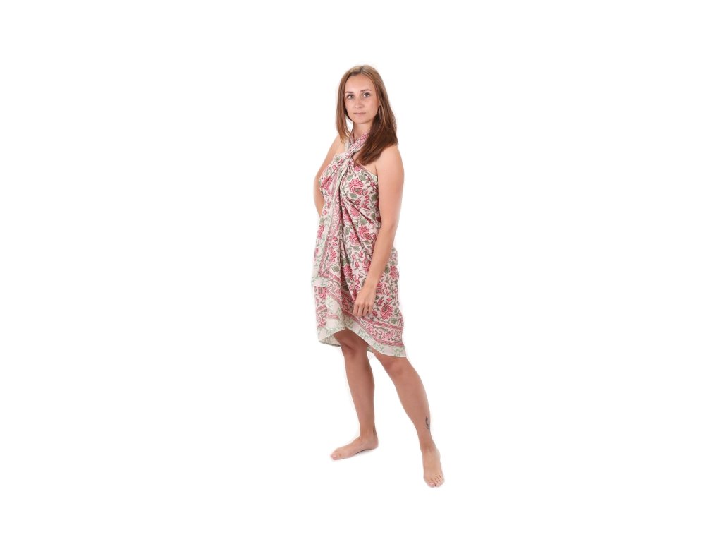 Sarong bílý s růžovými květy
