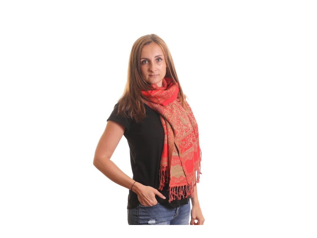 Šátek červený s barevnými lístky