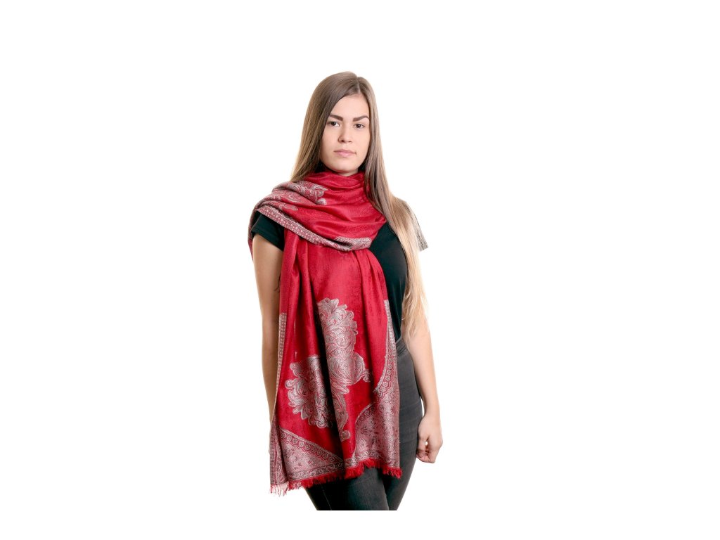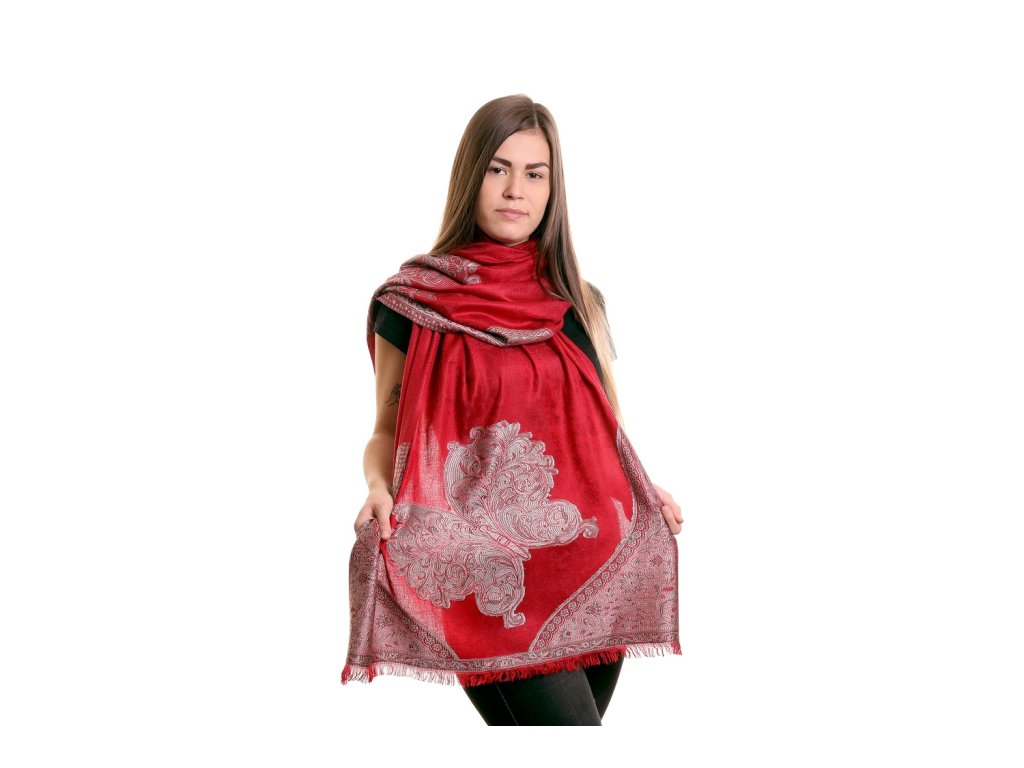 Šátek motýlí červený se stříbrným vzorem