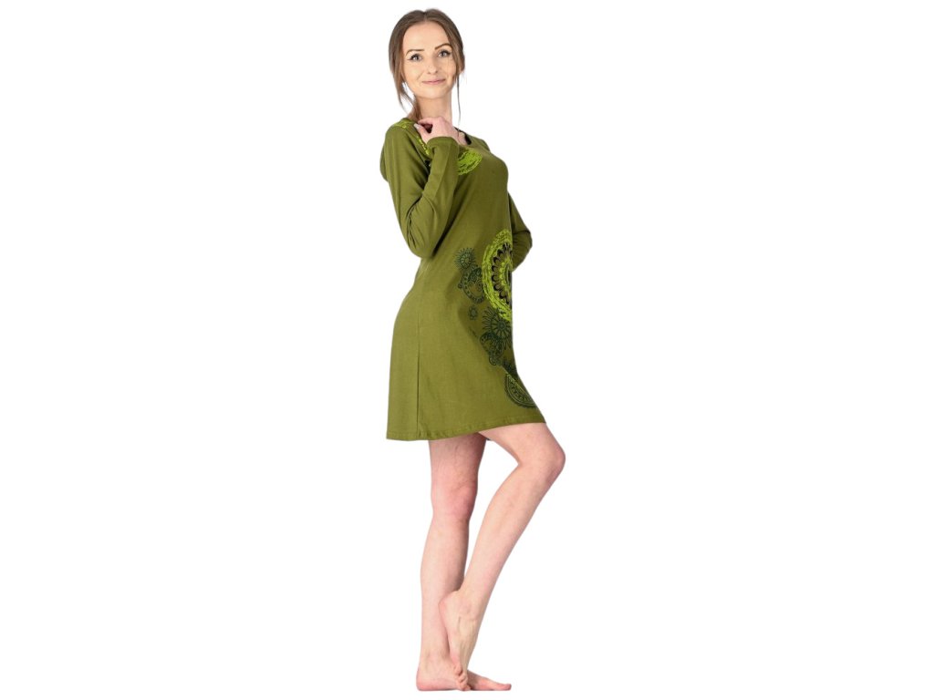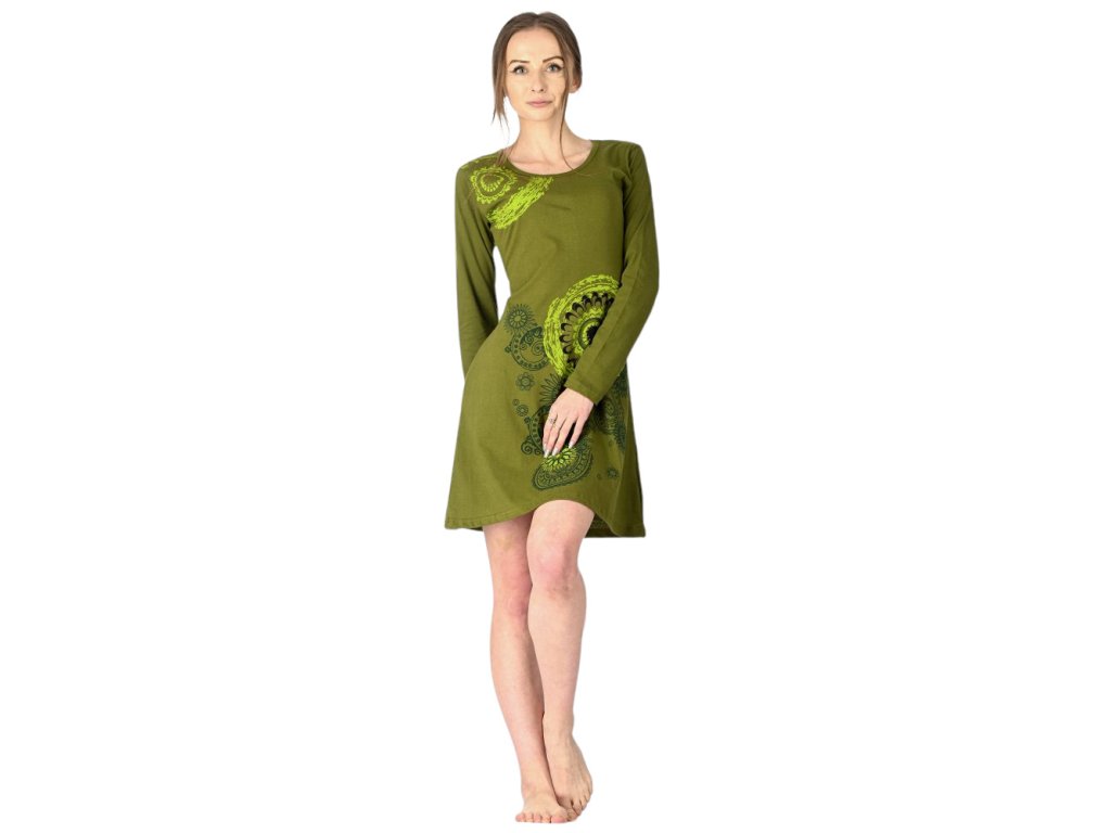 Bavlněné krátké šaty zelené s mandalou