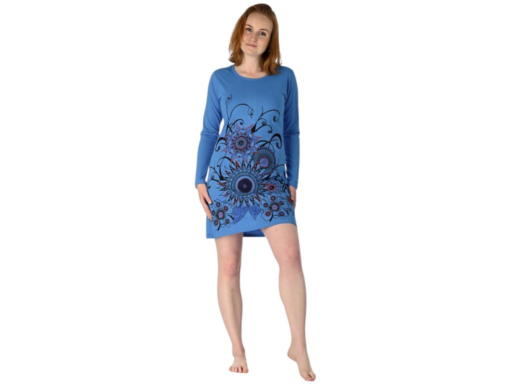 Bavlněné krátké tyrkysové šaty s vyšívaným vzorem velikost XL