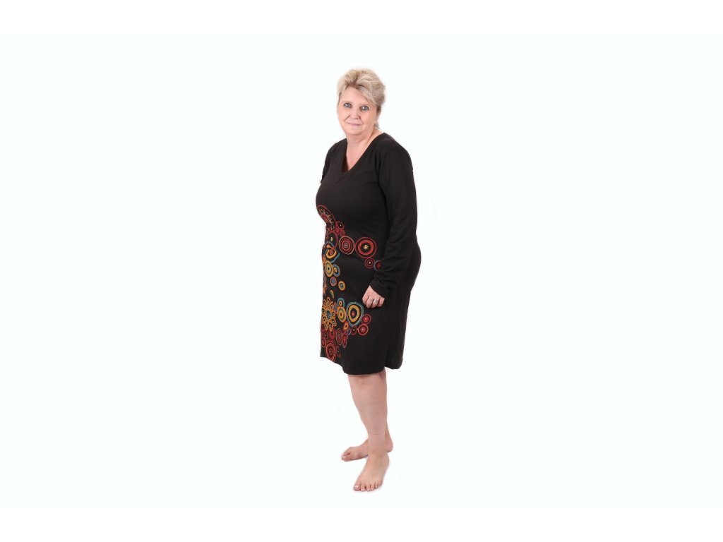 Dámské šaty z bavlněné látky s dlouhým rukávem ušité v Nepálu.