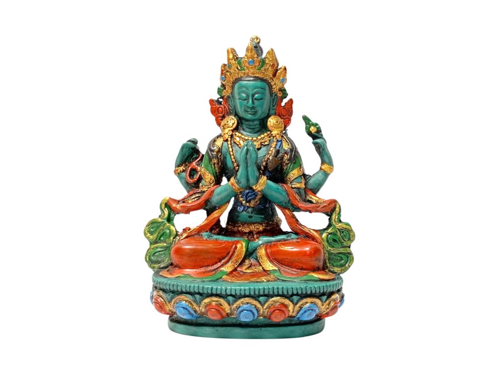 Soška barevná Čenrézig 14,5 cm - zelená varianta
