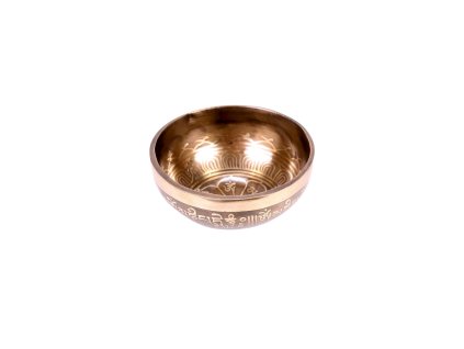 Nádherná, ručně tepaná tibetská mísa, zdobená, se zobrazením mantry Óm mani padme húm. Ze spodní strany je pak zobrazen symbol pro srdeční čakra anahátu. Dominantní tóny: F# a...