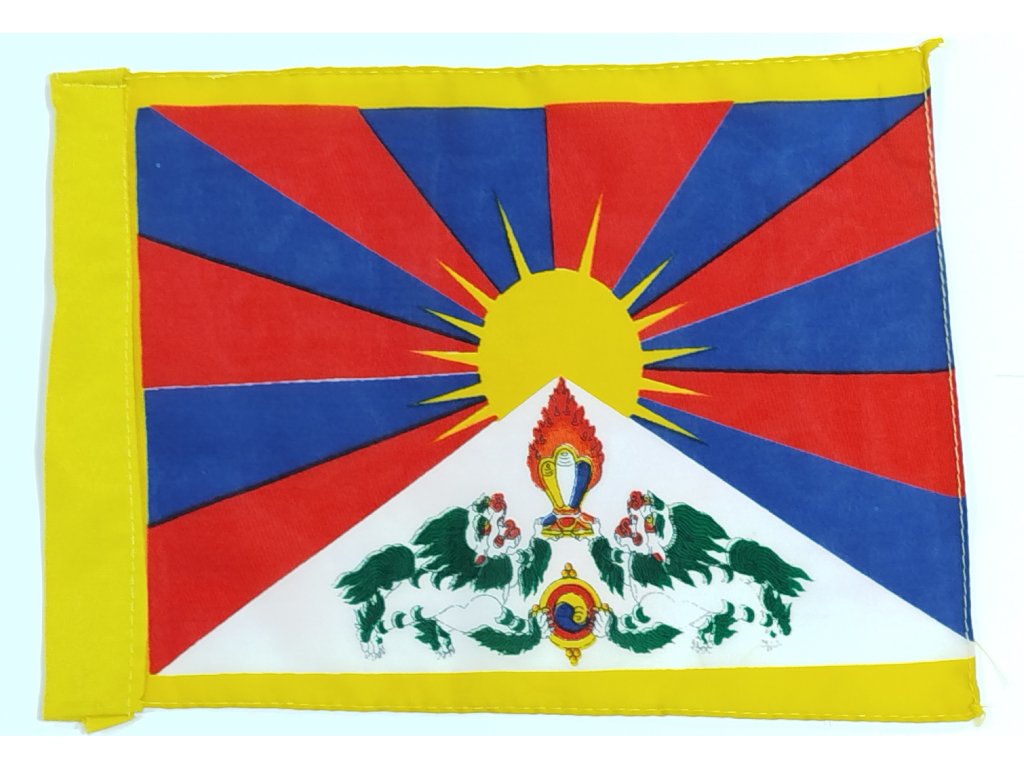 Tibetská vlajka (přesněji oficiální vlajka tibetské exilové vlády) byla původně bojová zástava navržená ve dvacátých letech 20. století jedním Japoncem. Poprvé byla představena 13. dalajlámou v roce 1912, který sjednotil vojenské vlajky všech tibetských provincií do jedné, kterou používala tibetská armáda až do roku 1950. V roce 1955 byla stanovena 14. dalajlámou jako oficiální vlajka Tibetu. Po protičínském povstání v roce 1959 byla vlajka na území ČLR zakázána. Výjimkou je Hongkong, kde tento zákaz neplatí. (Text: wikipedie)