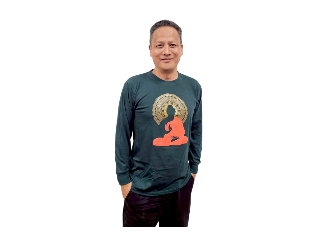 Tričko Buddha s dlouhým rukávem - tmavě-zelené