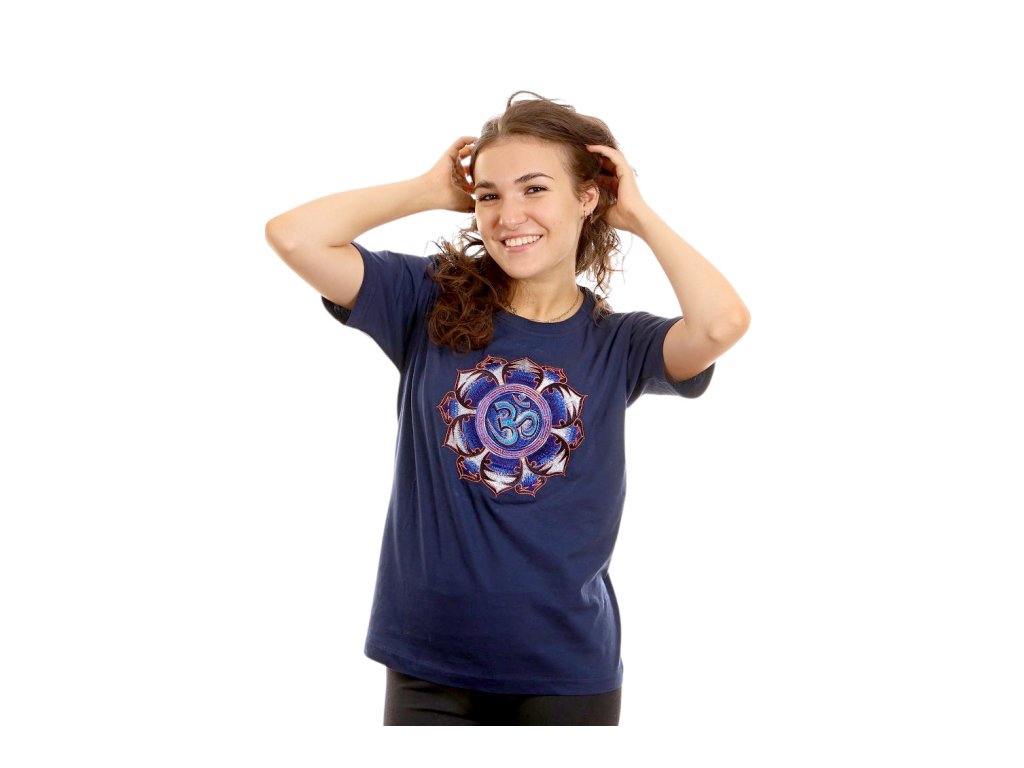 Tričko "Mandala Spirit" tmavě modré s modrým Óm