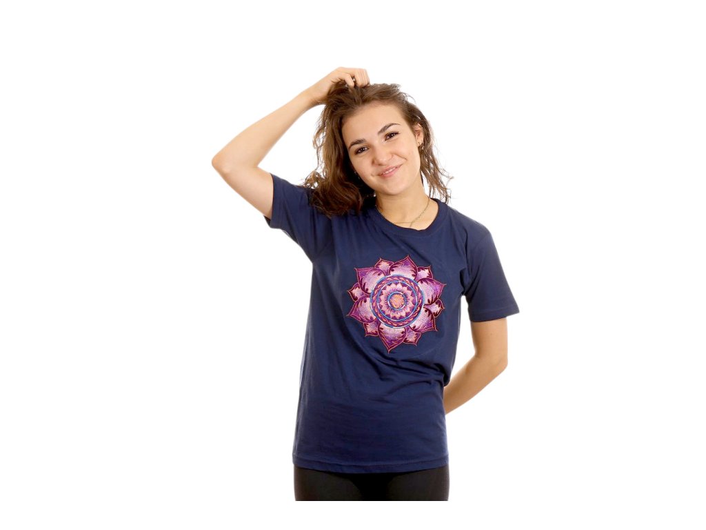Tričko "Mandala Spirit" tmavěmodré s fialkovým Óm