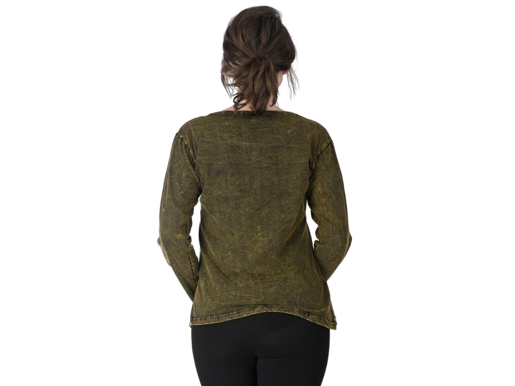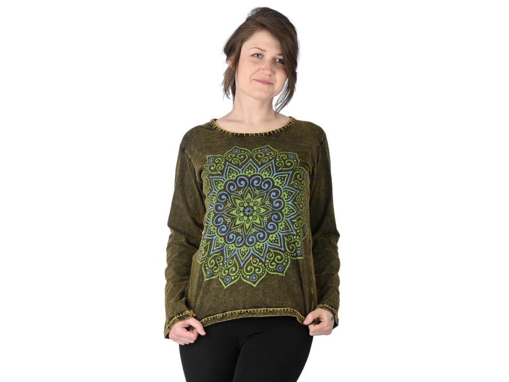 Tričko s dlouhým rukávem s mandalou - khaki