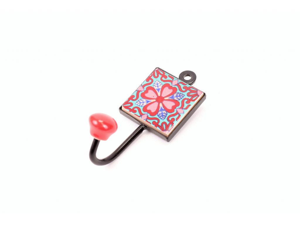 Keramický věšák červený kvítek 1