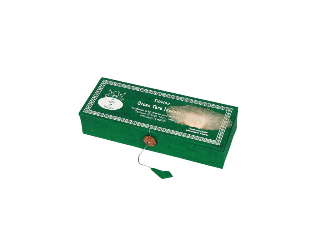 Poznejte božskou esenci Himálaje s dárkovou sadou Vonných tyčinek Zelená Tara, exkluzivní ručně vyráběnou směsí, která má přinést štěstí, prosperitu a rychlou pomoc a ochranu Zelené Tary.